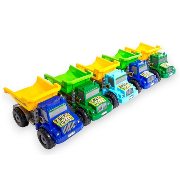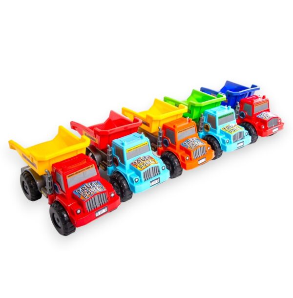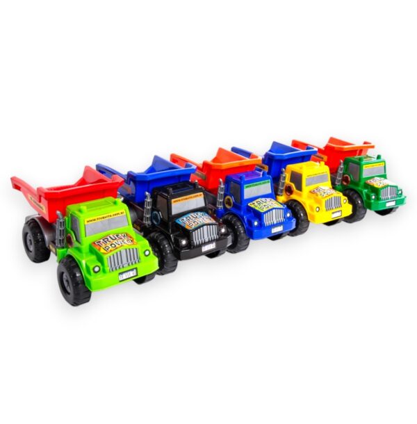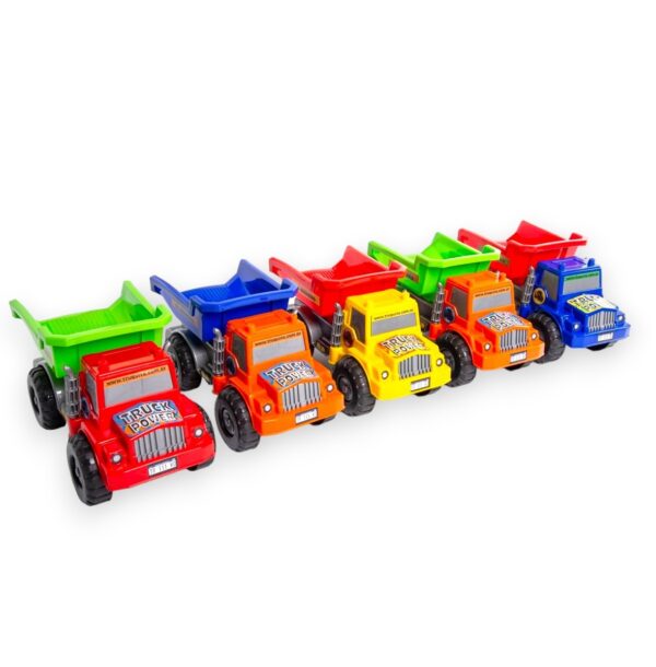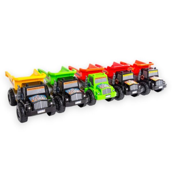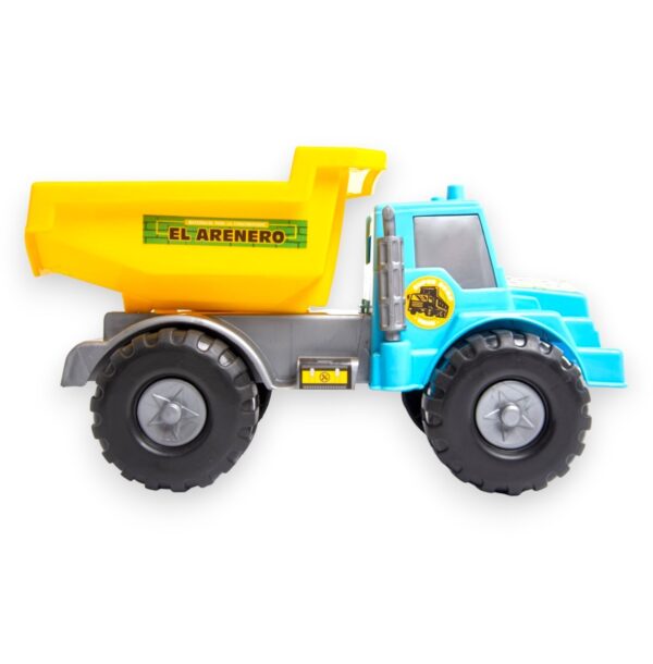 Nuestro camión volcador “El Arenero” es de material plástico, resistente y de excelente calidad, en su tolva se pueden transportar y descargar distintos objetos. Viene en colores surtidos y es ideal para edades de 3 años en adelante.