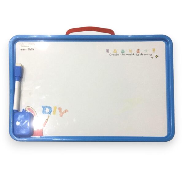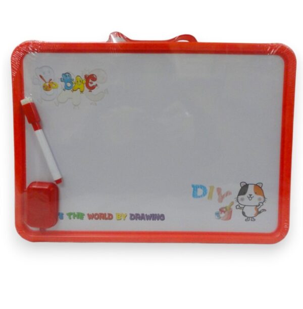 Pizarra acrílica con marcador y borrador, tiene agarradera para transportar. Disponible en 2 colores. Recomendado a partir de 3 años.