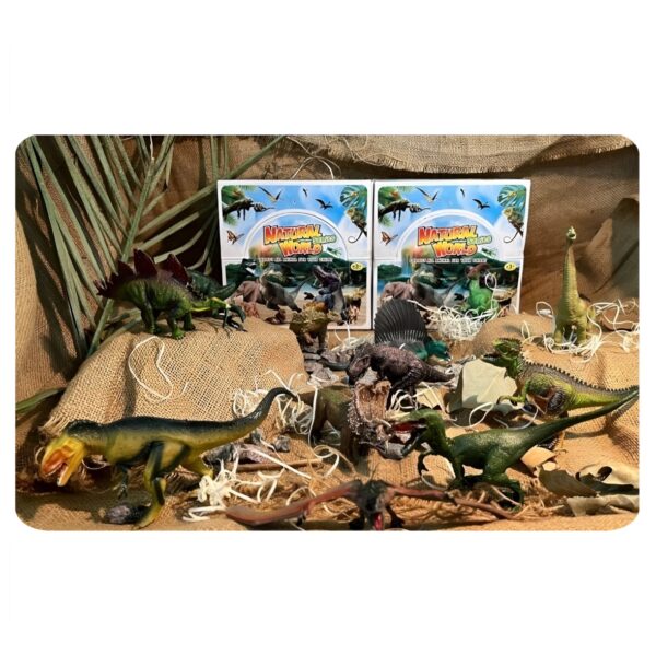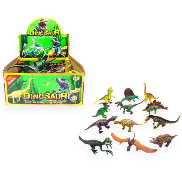 Dinosaurios en caja exhibidora por 12 unidades. Recomendado a partir de 3 años.