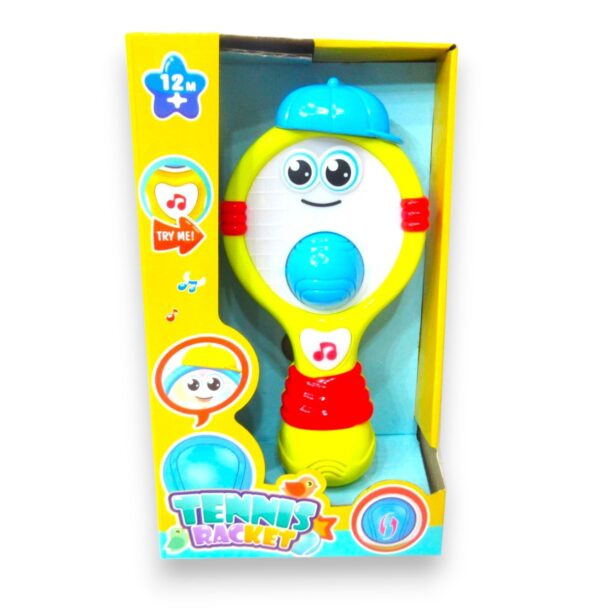 Raqueta musical a pilas con luz y sonido. Disponible en 2 modelos. Recomendado a partir de 3 años.