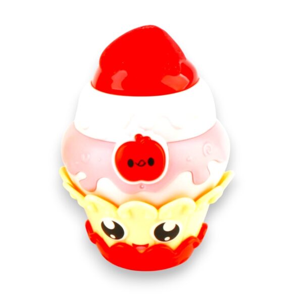 Cup Cake musical a pilas y cuerda, con luz y sonido. Disponible en 2 modelos. Recomendado a partir de 3 años.