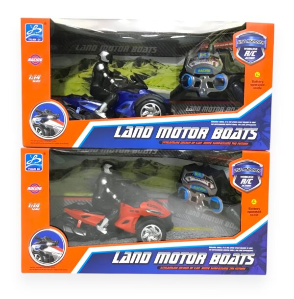 Moto Land R/C a pilas. Recomendado de 6 años en adelante.