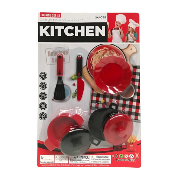 Set de cocina y accesorios en blister. Disponible en 4 modelos. Recomendado de 3 años en adelante.