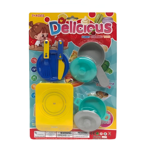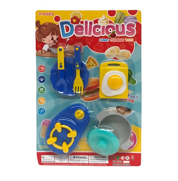 Set de cocina y accesorios en blister. Disponible en 2 modelos. Recomendado de 3 años en adelante.