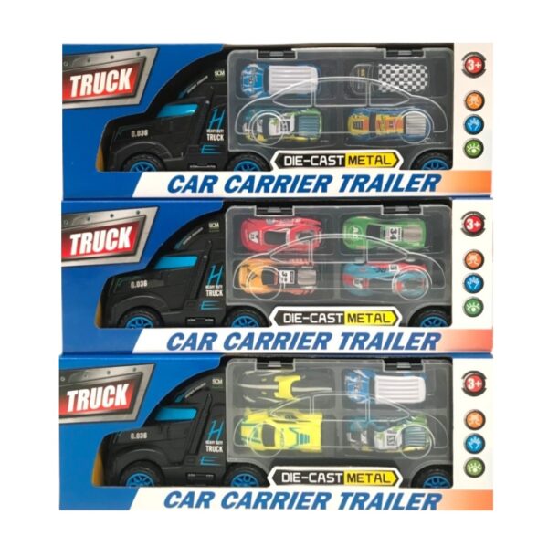 Remolque Porta Coches. Contiene 4 autitos. 3 Modelos Disponibles. Recomendado de 3 años en adelante.