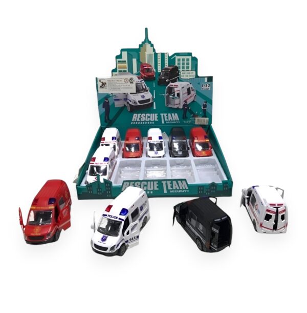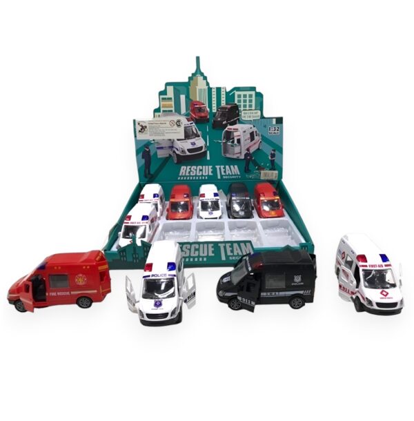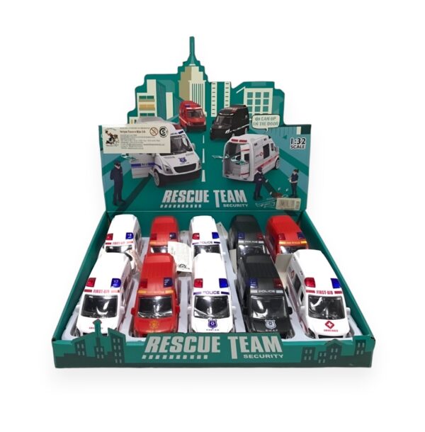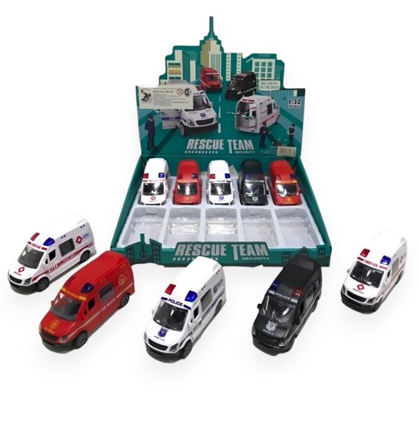 Con su diseño realista y su mecanismo de fricción, esta ambulancia a fricción proporciona horas de entretenimiento imaginativo, ofrece una experiencia de juego dinámica y entretenida. La caja exhibidora contiene 10 unidades en cuatro colores. Recomendado de 3 años en adelante