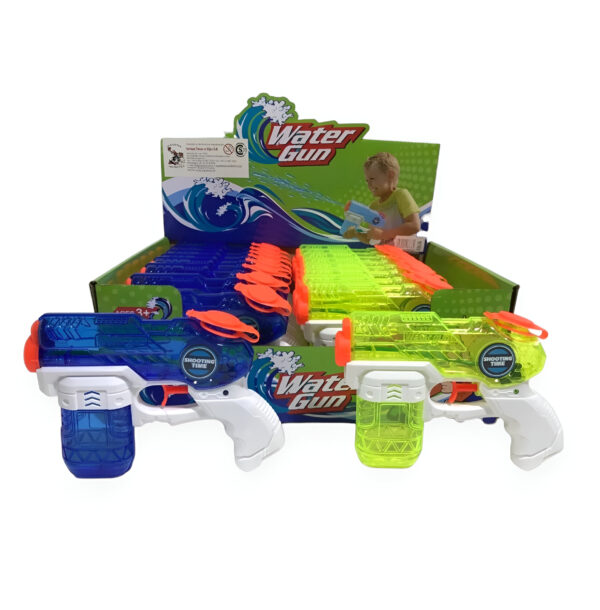 Arma lanza Agua En Caja Exhibidora x18 Unidades en 2 Colores. Recomendado a partir de 3 años