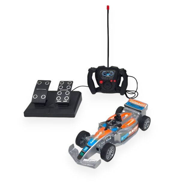 Este impresionante auto a radio control funciona con pilas y viene equipado con una emocionante pedalera para una experiencia de conducción aún más auténtica. Con su control remoto inalámbrico, los niños pueden dirigir el auto en diferentes direcciones y sentir la emoción de las carreras de Fórmula 1 desde la comodidad de su hogar. La pedalera añade un nivel de realismo adicional, permitiendo acelerar y frenar como verdaderos pilotos profesionales. Es una forma emocionante de fomentar la coordinación y la destreza mientras disfrutan de la adrenalina de las carreras de autos de Fórmula 1. Recomendado de 6 años en adelante