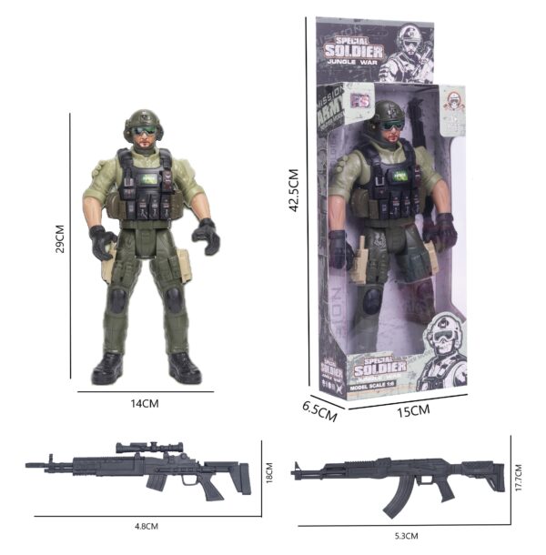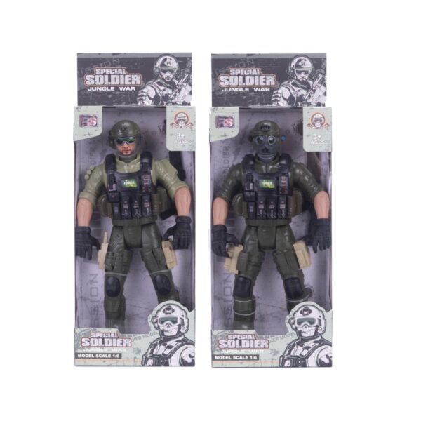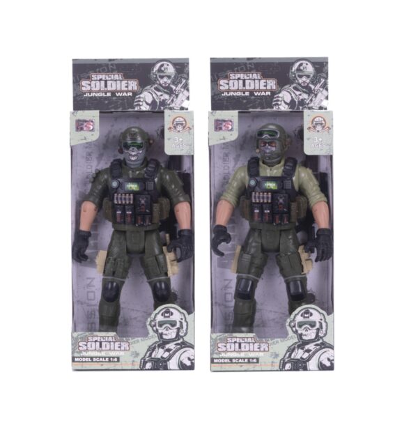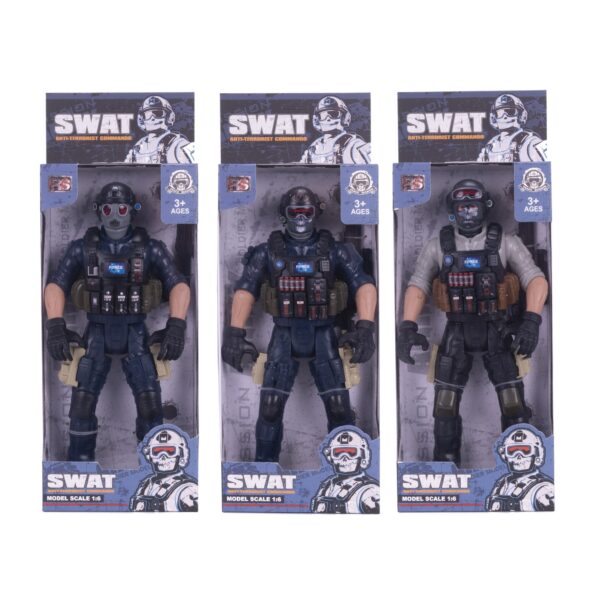 Muñeco 29cm con articulaciones móviles, incluye armas detalladas que agrega un toque de realismo al conjunto. Está disponible en 7 modelos diferentes, cada uno representa a un soldado o policía con uniforme y características únicas. Ideal para recrear escenas de acción. Recomendado para niños de 3 años en adelante
