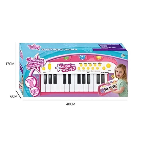 Divertido y colorido órgano electrónico a pilas, ideal para estimular la creatividad y la coordinación motriz. Cuenta con luces, botones interactivos con diferentes sonidos y melodías. Recomendado para niños a partir de 3 años