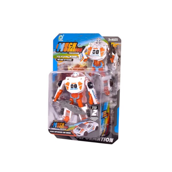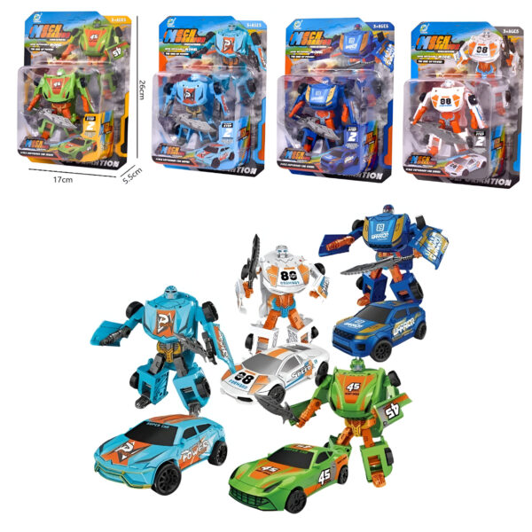 Robot Transformers combina dos formas en una: un robot articulado que se transforma en auto deportivo, es fácil de manejar, colorido y resistente, ideal para juegos de imaginación. Viene en 8 modelos diferentes, con diseños y colores variados. Recomendado para niños a partir de 6 años