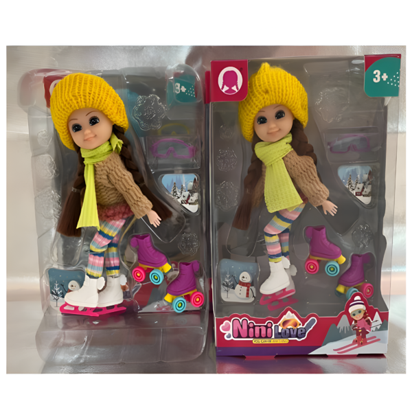 F9002-Muñeca Articulada 15cm con Esquíes o Patines