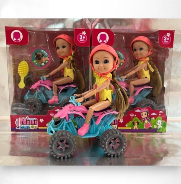 F9004-Muñeca Articulada 15cm C/Moto-Cuatriciclo-Locomotora
