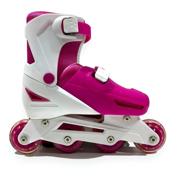 Patín rosa en línea ajustable tallas 35 a la 38. Recomendado a partir de 3 años.